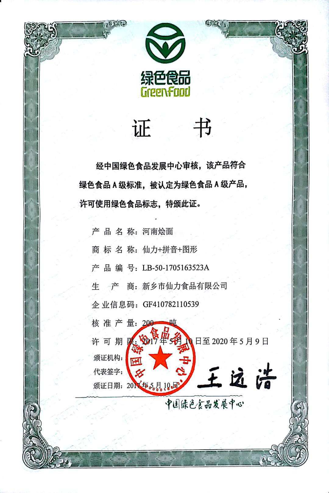 河南燴面-綠色食品證書